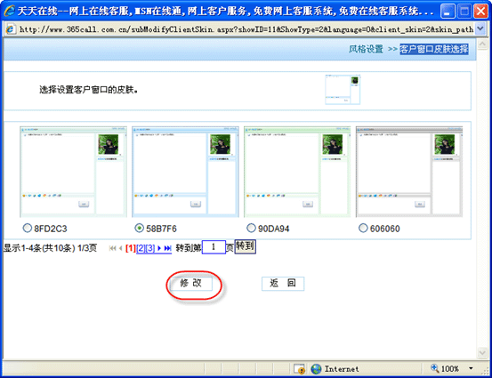 個性化訪客窗口,使之與網(wǎng)站風格整體協(xié)調統(tǒng)一。 登陸kf000在線客服系統(tǒng)網(wǎng)站,點擊“系統(tǒng)設置”->“風格設置”->“客戶窗口設置”,彈出客戶窗口皮膚選擇頁: