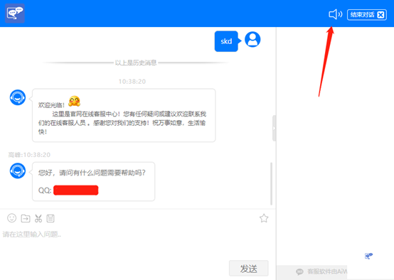 PC訪客端上線了消息聲音提醒,可提醒訪客快速瀏覽消息并回復(fù);點擊喇叭圖標(biāo)可開啟和關(guān)閉消息聲音提醒。